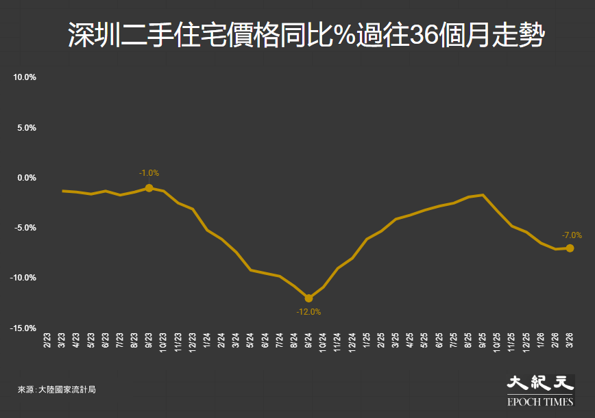大陸國家統計局於16日公布最新70個大中城市住宅價格指數,3月新建商品住宅同比平均下降3.4%,比上月的3.2%跌幅有所加快,而環比則跌0.2%。二手市場方面,平均同比樓價下挫6.3%,環比亦跌0.2%。