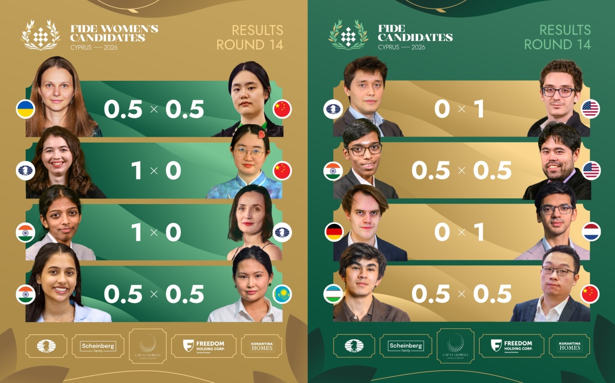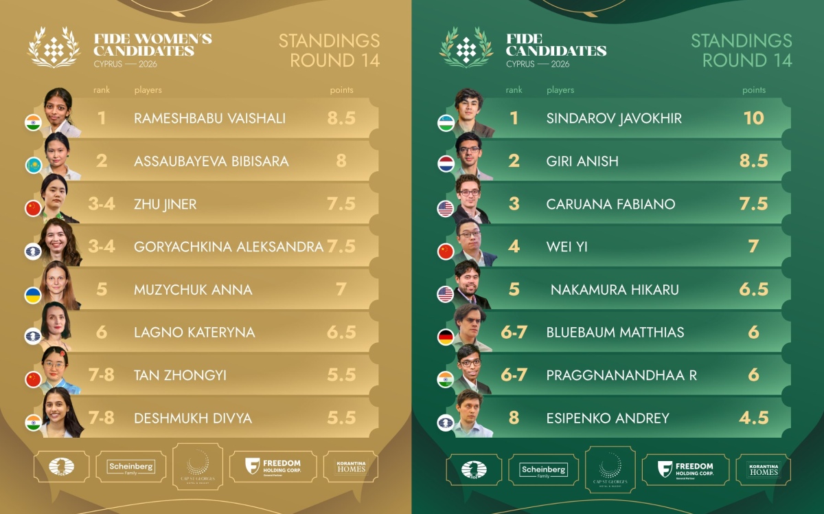 14日第13輪賽前,辛達羅夫(Javokhir Sindarov)和吉里(Anish Giri)分居積分榜前兩位。二人在候選人賽倒數第二輪交手,直接關係到冠軍歸屬,因此吸引了眾多棋迷的目光。