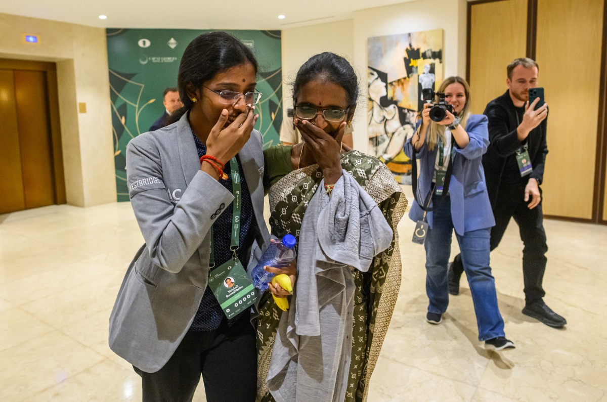 15日最後一輪,阿索巴耶娃早早與印度女子世界盃冠軍德什穆克(Divya Deshmukh)戰和,隨後等待瓦伊莎莉的對局結果出爐。