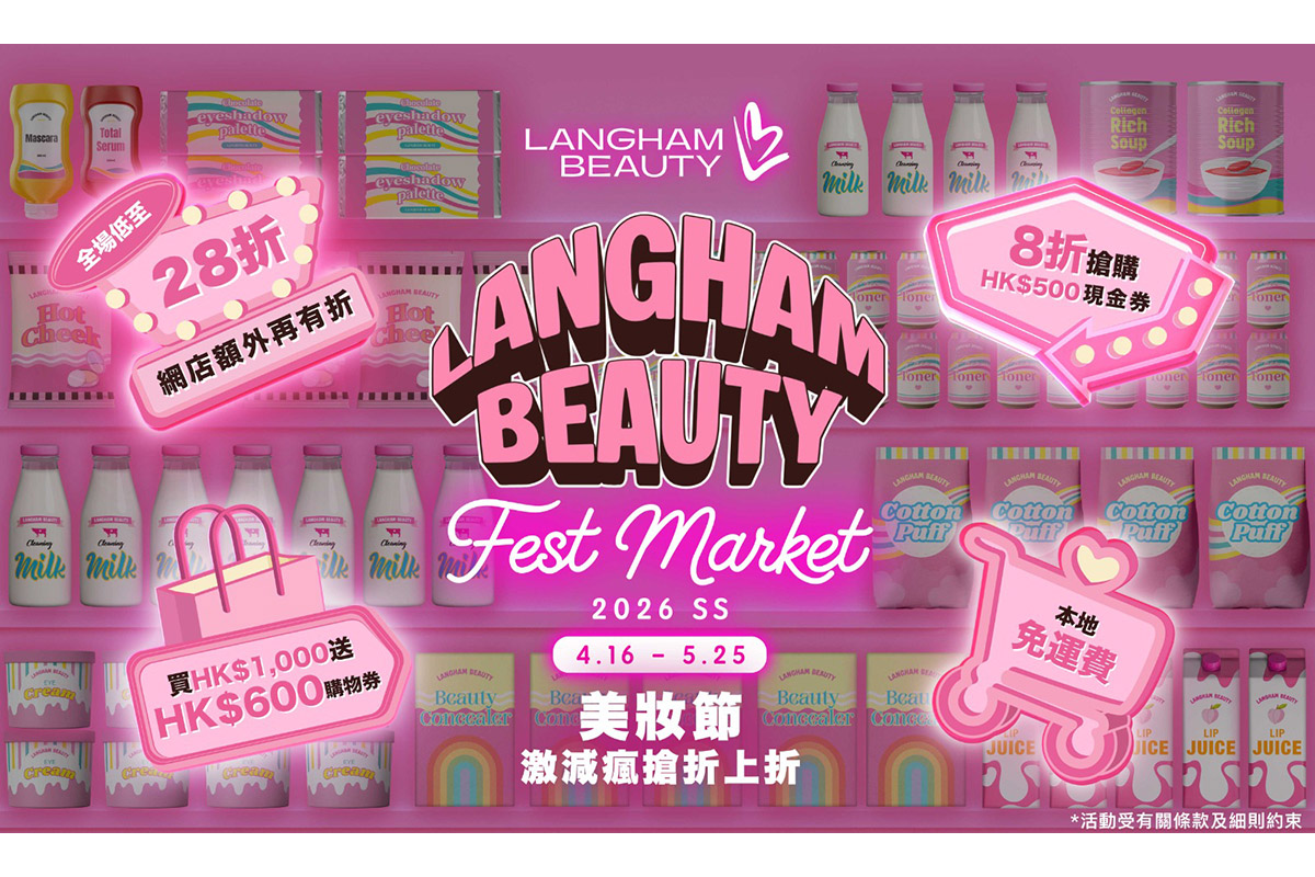 旺角朗豪坊的LANGHAM BEAUTY宣佈,年度焦點活動「LANGHAM BEAUTY Fest SS26 美妝節」由4月16日至5月25日舉行。今季以「激減瘋搶折上折」為主題,聯同超過60個國際頂級美妝品牌,推出逾300款激減套裝,折扣更低至28折。