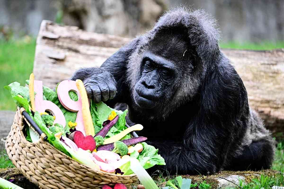 周一(4月13日),德國柏林動物園內最年長的大猩猩「法圖」(Fatou)迎來了69歲生日,園方精心準備了一籃子它最愛的新鮮蔬果,為這位「高齡壽星」慶生(請點看)。