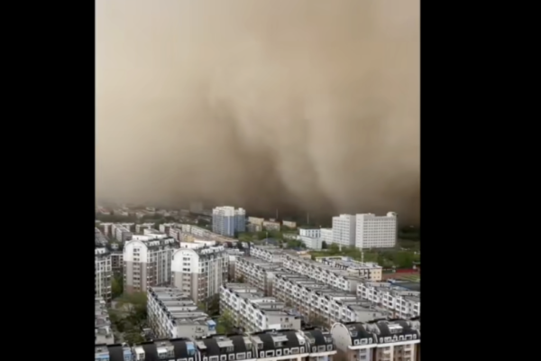 當地民眾上傳的影片顯示,沙塵形成數百米高的沙牆快速蔓延,遮天蔽日。