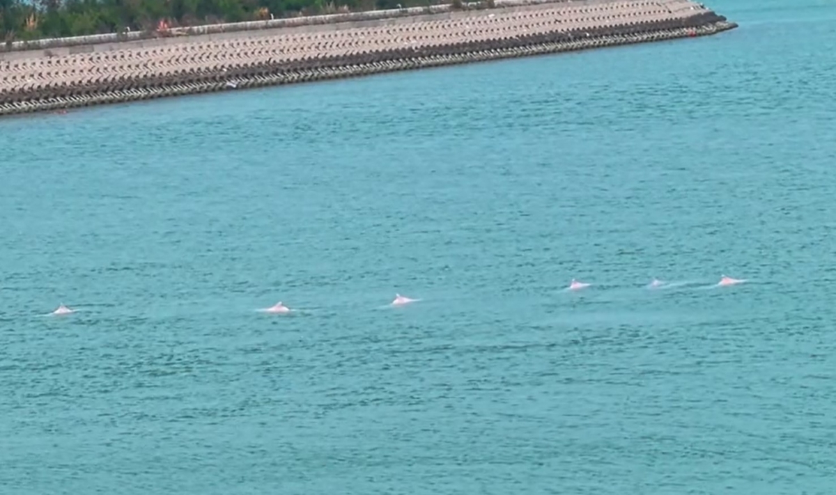 目擊者黃先生表示,「太驚喜了!前不久剛在附近海域見過粉海豚,沒想到它們又來『串門』了。」他用手機記錄了海豚暢遊的珍貴畫面。