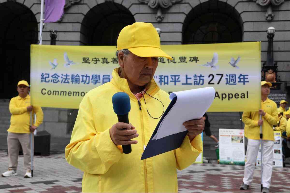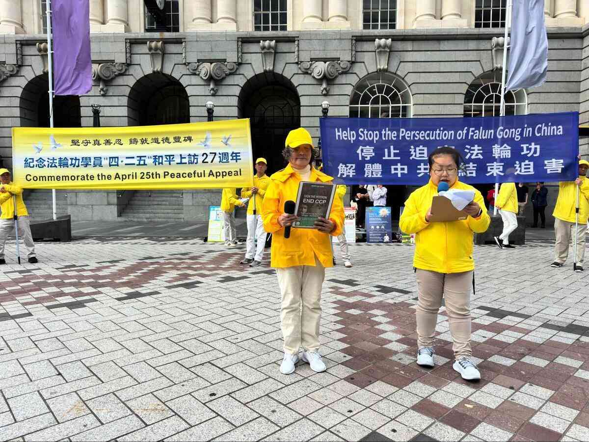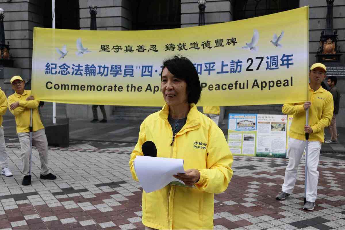 她在發言中說,「我與同修於4月24日晚乘火車前往北京。25日清晨,我們來到府右街國家信訪辦。現場雖匯集了來自全國各地的眾多同修,卻秩序井然,場面祥和肅穆,毫無喧譁之聲。路過的北京市民投來的多是好奇與友好的目光。我們靜靜站立等候,直到傍晚傳來達成協議的消息,大家才在輔導員的組織下有序撤離。臨行前那一刻,警察們看著我們平靜離開的背影,目光中流露出敬意。」