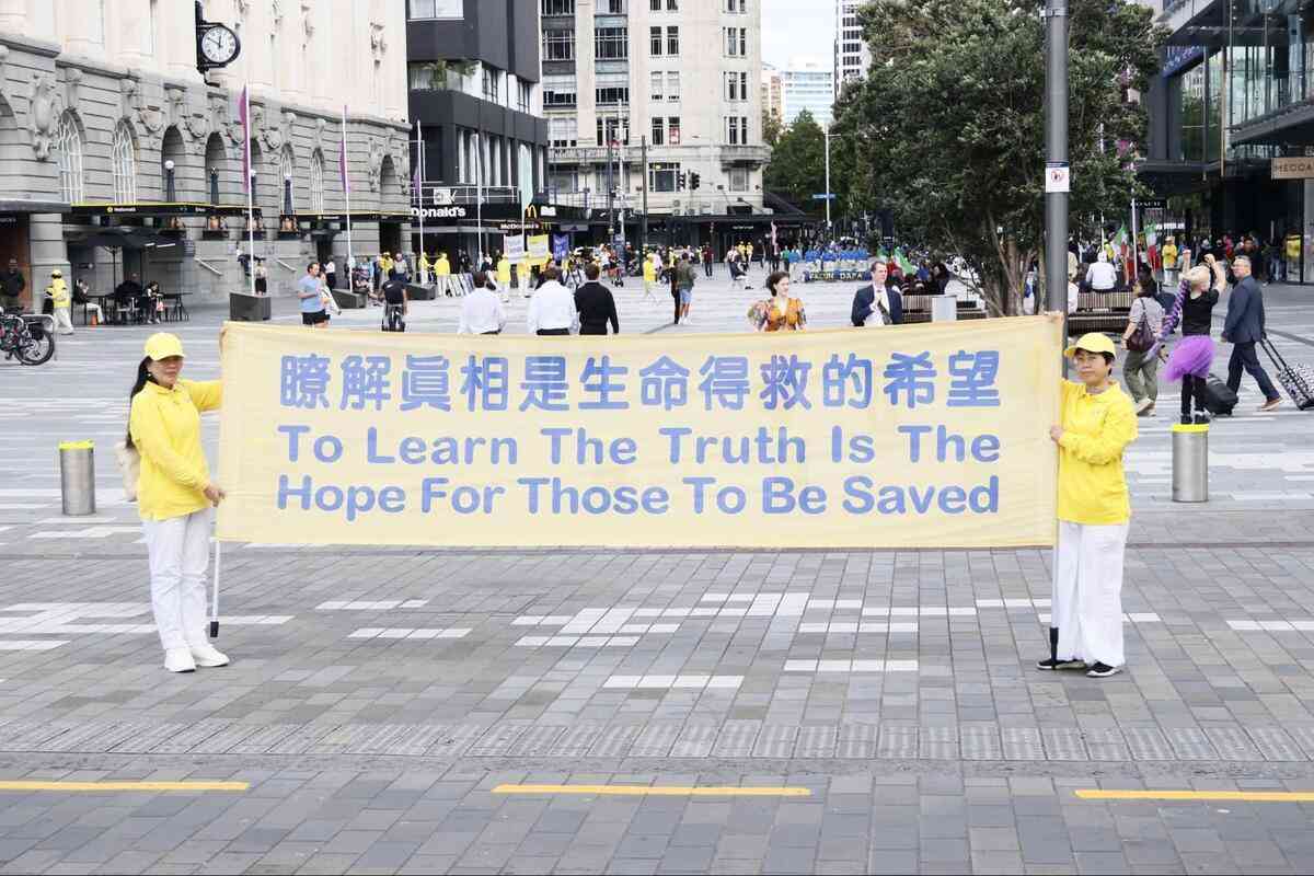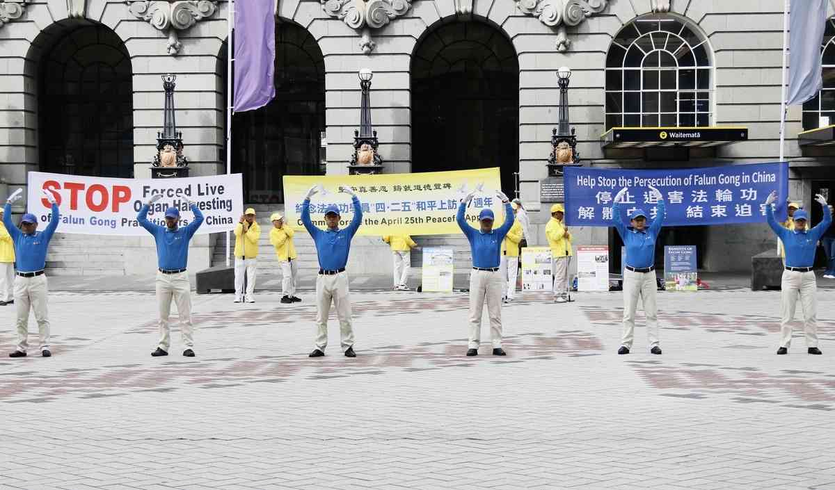 2026年4月18日周六,紐西蘭部份法輪功學員在奧克蘭市中心伊利沙伯廣場舉行集會,通過集體煉功、天國樂團表演、425親歷者發言等形式,紀念1999年萬名法輪功學員4.25和平上訪27周年,並呼籲制止中共對法輪功的迫害、結束其暴政。