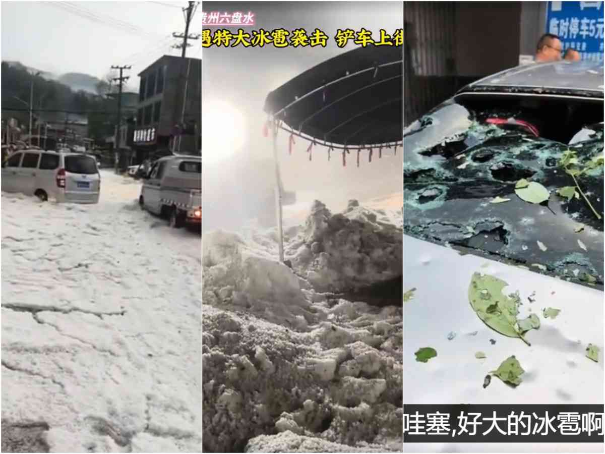 在此之前,據《新京報》報道,4月16日,貴州冊亨縣也先後遭遇兩輪冰雹襲擊,有車輛玻璃被冰雹擊穿,城區部份路段出現積水。