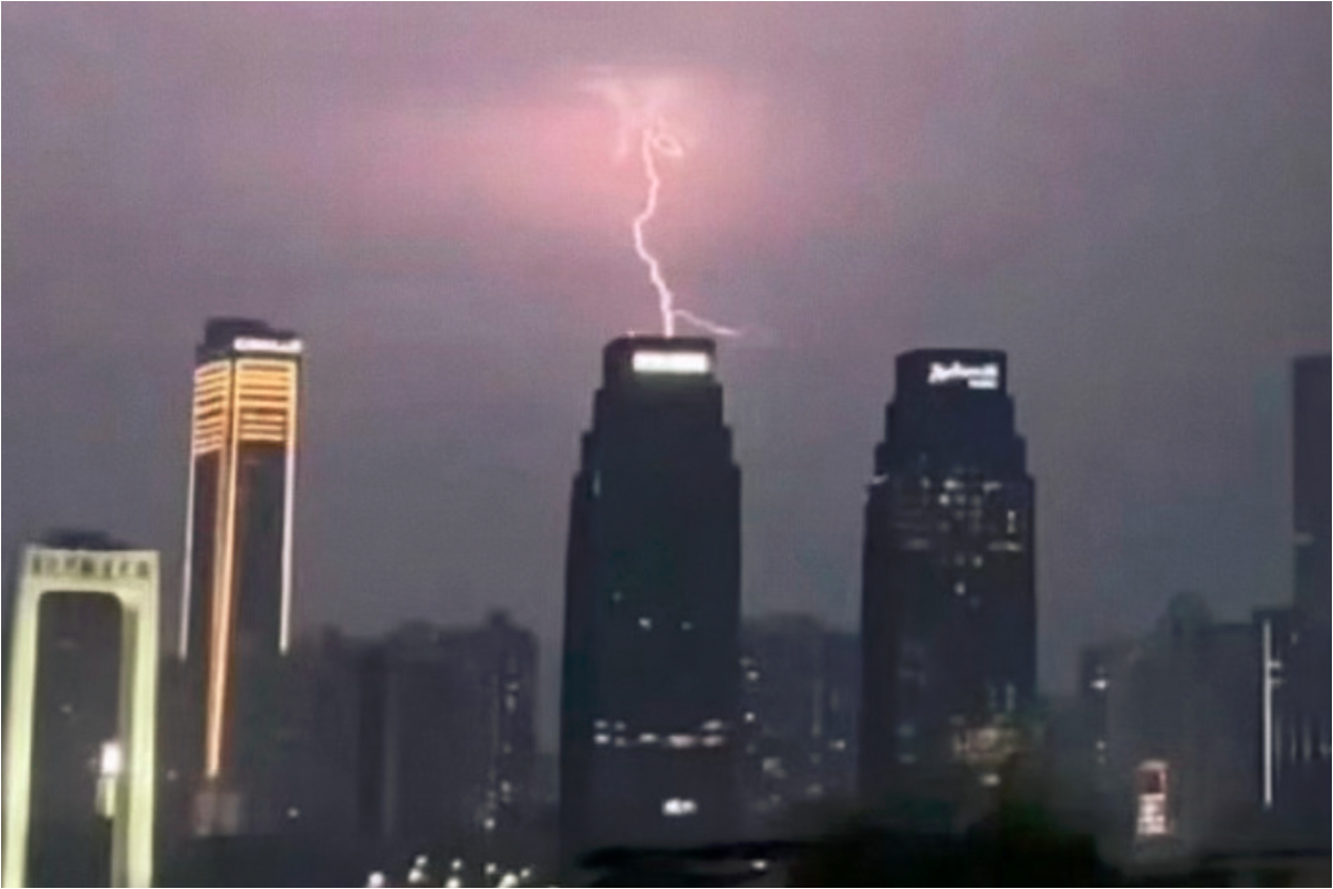 豈料同一天,「時代峰峻」位於重慶總部的大樓樓頂遭到閃電擊中。多段由市民拍攝的影片顯示,強大雷電流順著建築防雷設施導入地下,場面震撼。
