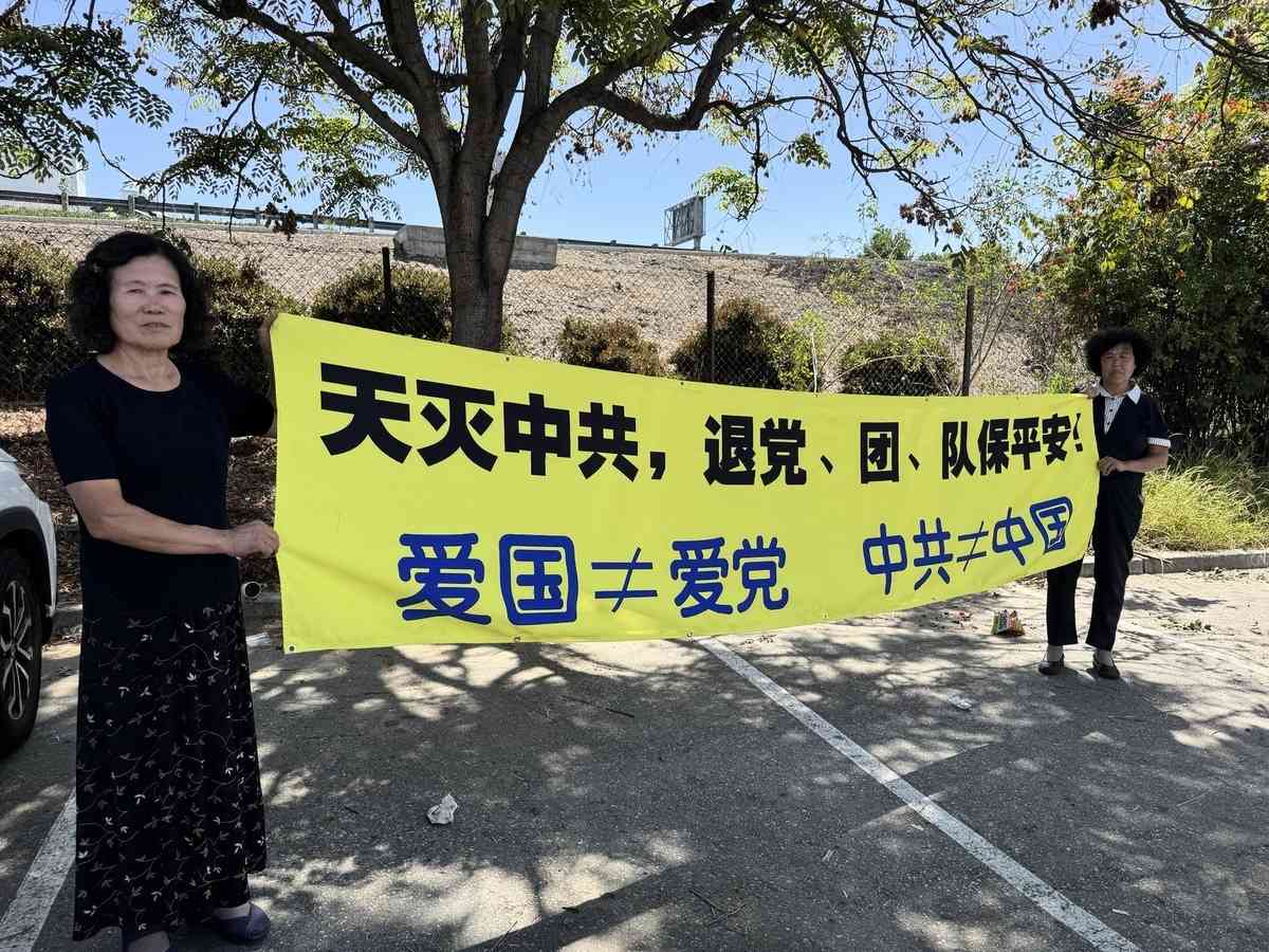 當事人張女士介紹,事發時,她與另一位三退義工在工業市講真相、勸人三退(退出中共的黨、團、隊組織);馬路對面還懸掛著多條真相橫額,上書「天滅中共」「中共≠中國」「三退保平安」等標語。