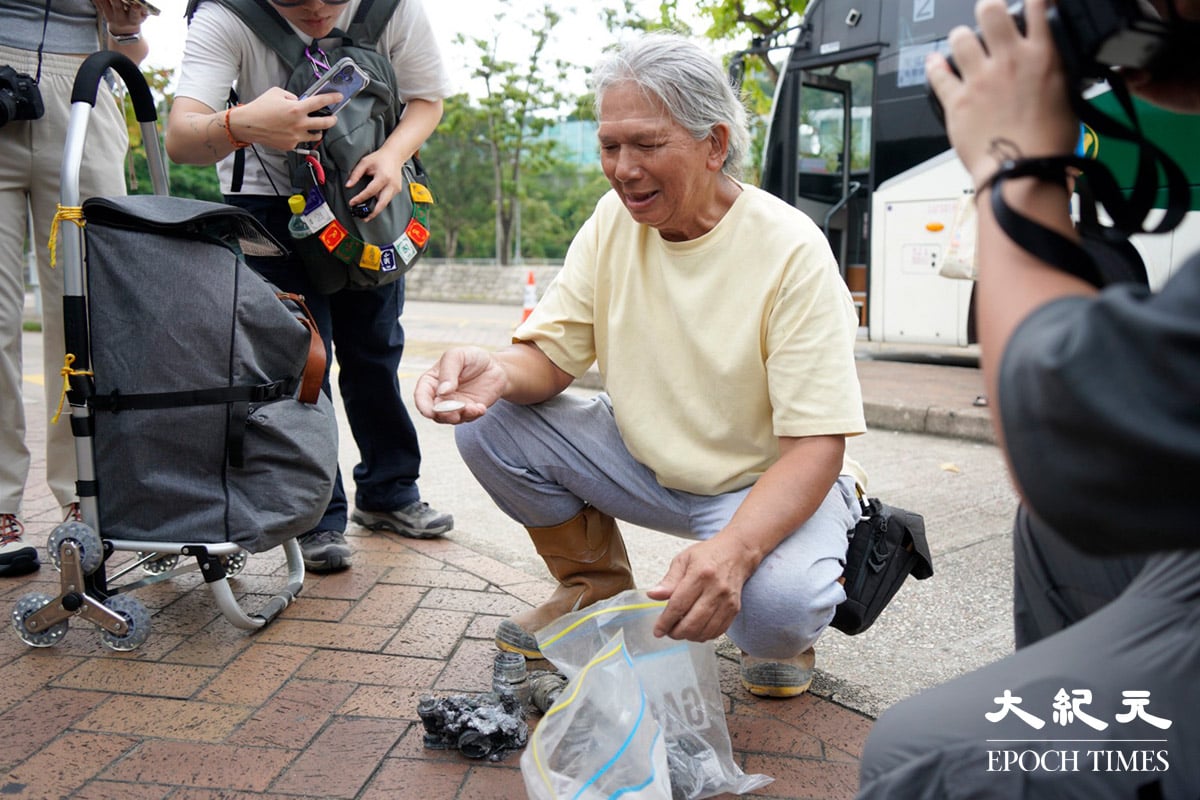 被問到上樓會否辛苦,梁說自己平時有行山習慣,以往亦間中行樓梯返家,所以覺得今日行樓梯上樓無問題,他還帶了一張摺凳,方便坐下來找物品。