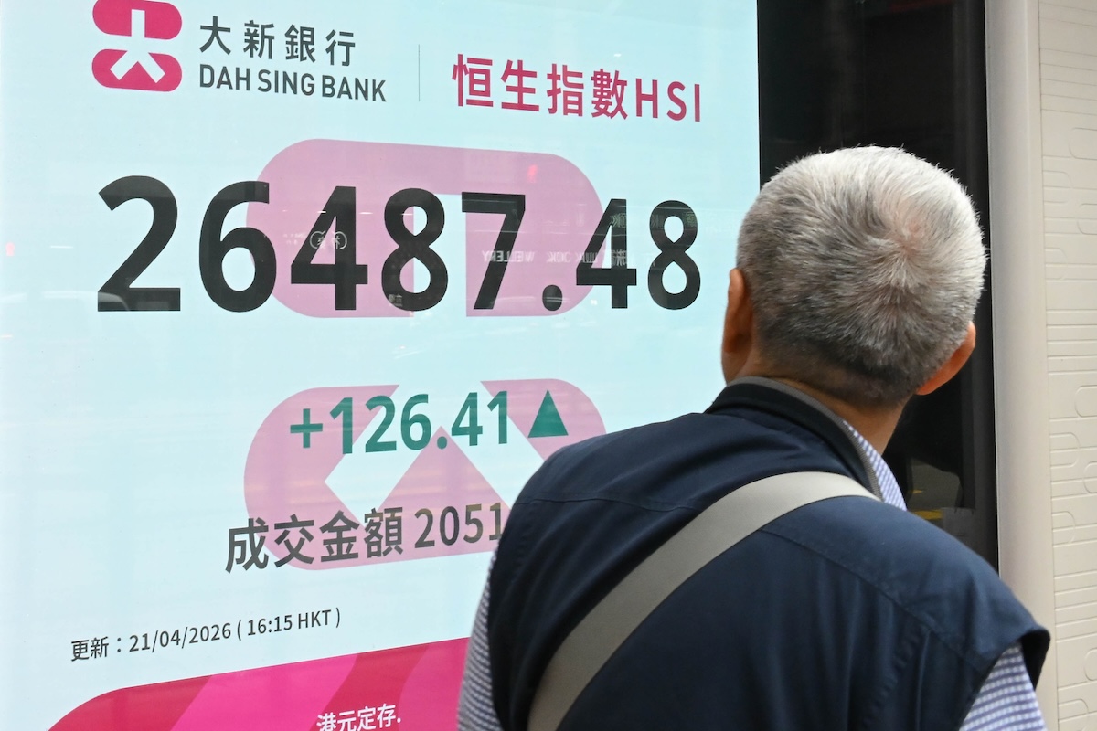 美股三大指數昨夜微跌,亞股今天(21日)造好,台股升1.8%、韓股更飆2.7%,中港股高收。恒指今早高開81點,盤中高位升168點,低位曾跌19點,收市報26,487點,上漲126點(即升0.5%),成交額2,052億。國指升0.5%、科指輕微走低0.1%。