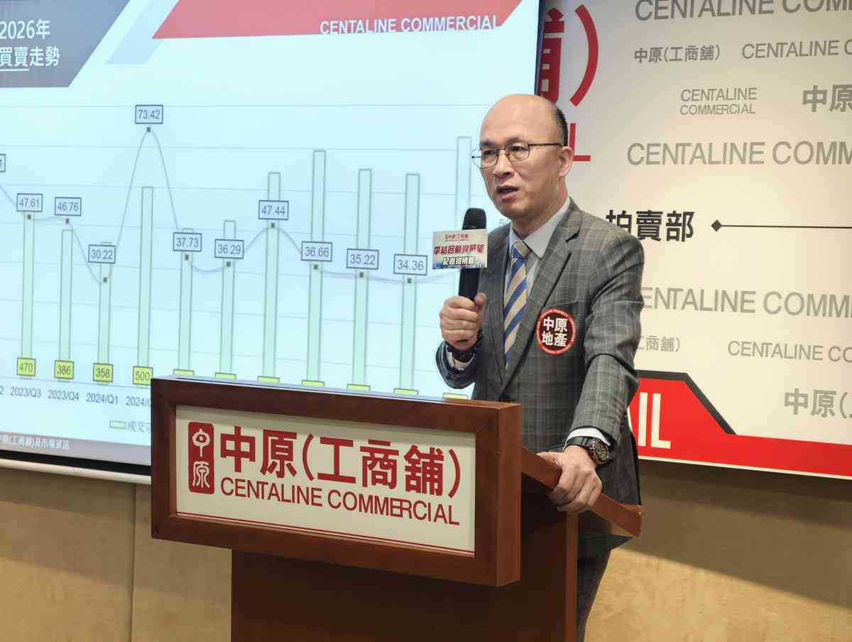 中原(工商舖)董事總經理潘志明表示,商舖市場第一季買賣成交錄得約186宗,成交金額約33.21億元,按季分別上升約12.05%及約24.47%,較2025年第一季則微跌約3.63%及約10.57%。而季內實力買家積極入市尋寶,最矚目成交為永倫集團以近3億元蝕讓金鐘力寶中心一籃子舖位,涉及面積約9,839平方呎(未核實),平均呎價約10,441元。翻查記錄,永倫集團於2017年以約7億元購入物業,是次成交賬面虧蝕約6成,預料舖位新買家將有機會作自用。