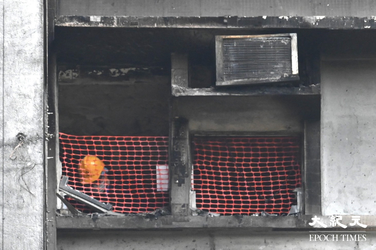 宏福苑宏新閣居民周三(22日)繼續上樓執拾。災前獨居在宏新閣30樓的80歲梁女士,因腳痛未能上樓,形容即使上到都無法下樓,故託女婿上樓,自己在樓下等待。