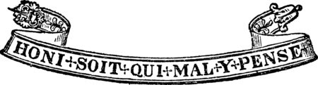 勛章上還鐫刻著愛德華三世說出的那句金色箴言: 「Honi soit qui mal y pense」(心懷邪念者應感羞恥)。