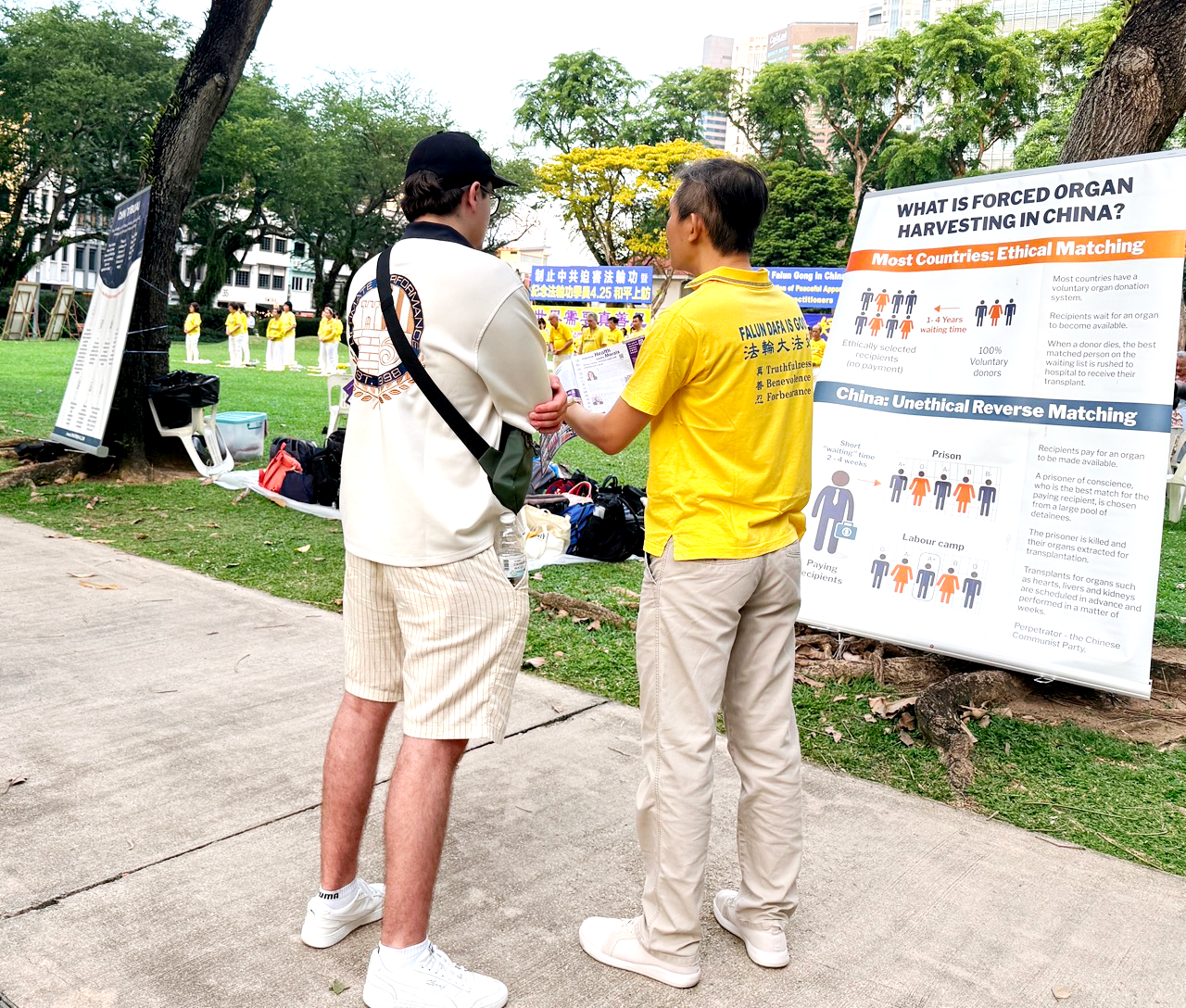 2026年4月16日,新加坡部份法輪功學員在芳林公園舉辦活動,紀念1999年4月25日發生在北京的萬人和平大上訪事件,同時,呼籲各國正義人士共同制止中共這場持續近27年的迫害。活動吸引各族裔民眾了解事實真相、支持善良人。