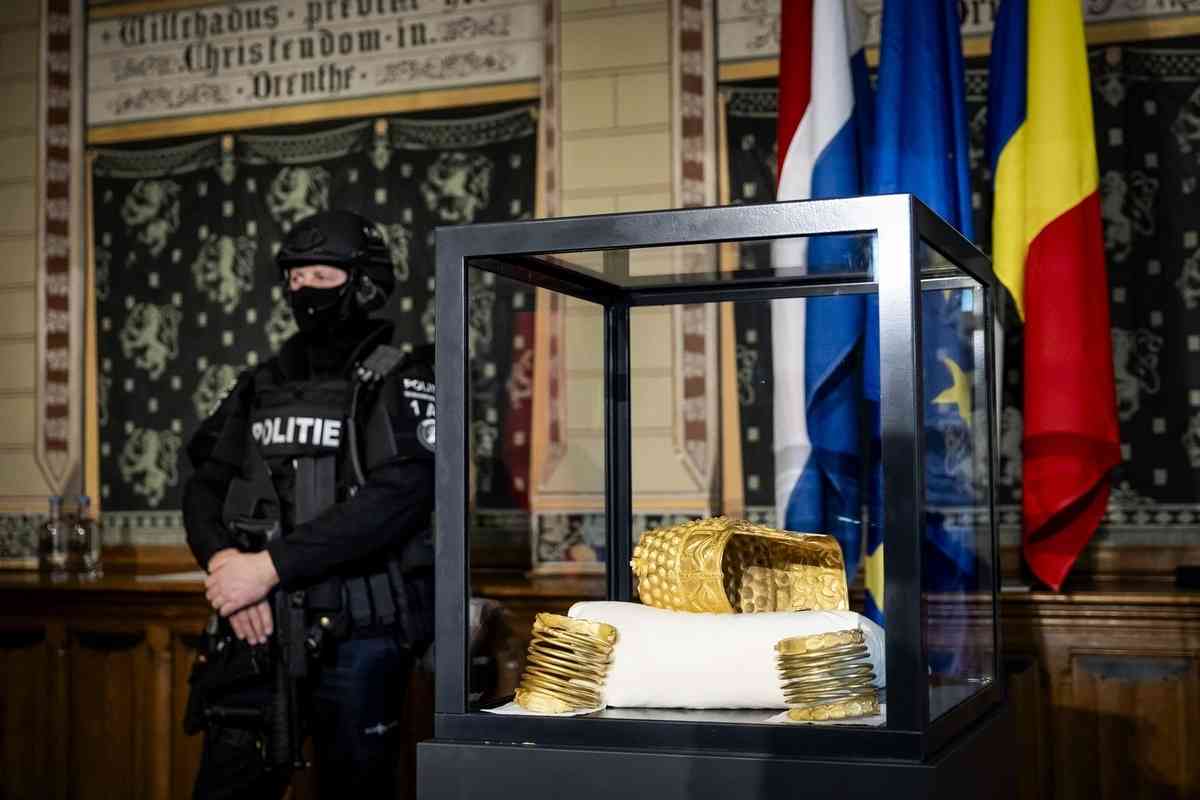 這批文物於2025年1月由羅馬尼亞國家歷史博物館出借給荷蘭德倫特博物館(Drents Museum),沒想到在展出期間遭竊。竊賊用爆炸裝置破壞博物館入口,隨後盜走了金頭盔和三隻黃金手鐲,極大地震動了國際藝術界及羅馬尼亞當局。