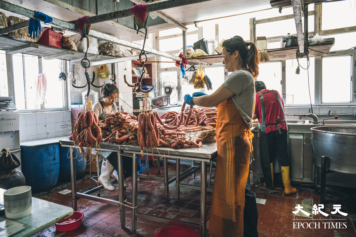 三興臘味每年從中秋過後開始製作,直到農曆年過後才停工。記者曾追問,為何有半年不生產?她們笑說,夏天少人吃臘腸,為免滯銷,倒不如外出打工。這種「跟季節走」的節奏,讓臘味成為真正的時令食物,也保留了它的珍貴感。