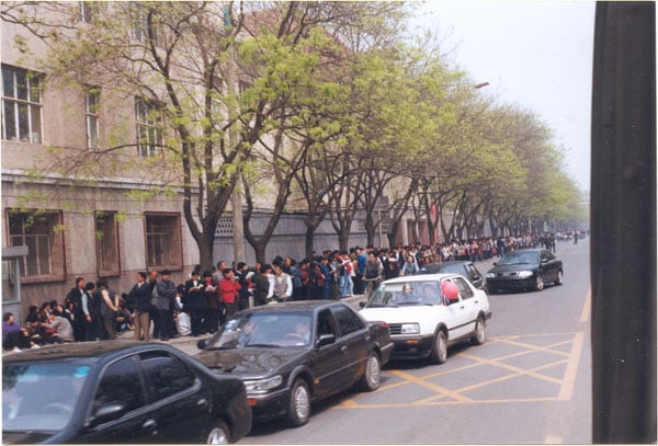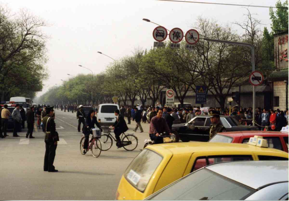 那天早上,還有人看到,越來越多的法輪功學員從四面八方來到府右街北口。開始時警察把守著,不讓他們進入府右街。大家只能在街口的東西兩側靜靜地站著。