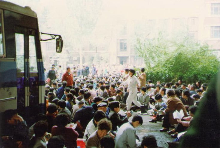 當天中共安插了許多便衣,企圖煽動學員,製造事端,引起騷亂。下午2、3點鐘時,當時在清華大學就讀精密儀器與機械學系的王欣(現居美國)看到,有一個女子騎著電單車,戴著頭盔和口罩,來到學員跟前,鼓動大家去怎麼做怎麼做,似乎要把事情鬧大。