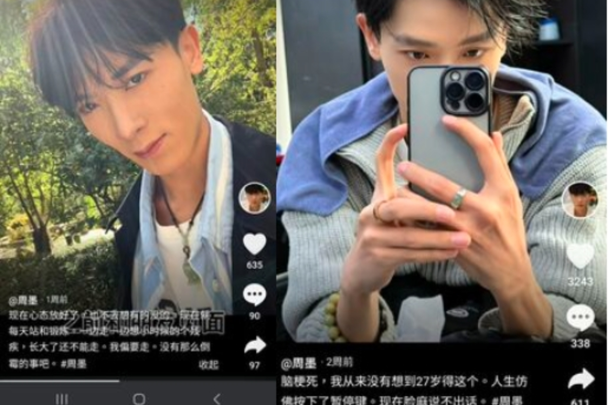 27歲的大陸男星周墨(本名何枝紅)因參加選秀節目《青春有你》受到關注。去年還在參演電影的他,近日突然在社交平台自曝罹患右側小腦半球腦梗死(腦梗塞)。身高185厘米的他體重從78公斤驟降至48公斤,並因病剃光頭、坐輪椅。消息震驚娛樂圈。