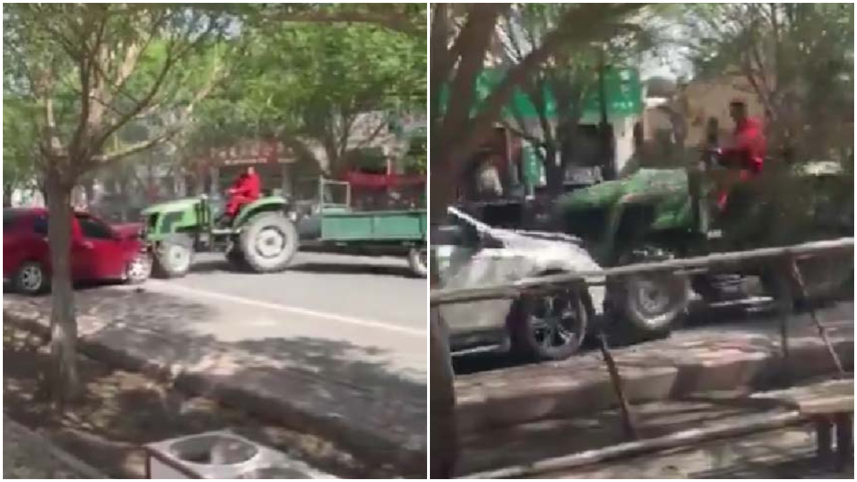 中國大陸恐怖的隨機傷人事件頻發。網傳甘肅酒泉市一名男子開著拖拉機,沿路追撞行人和車輛。