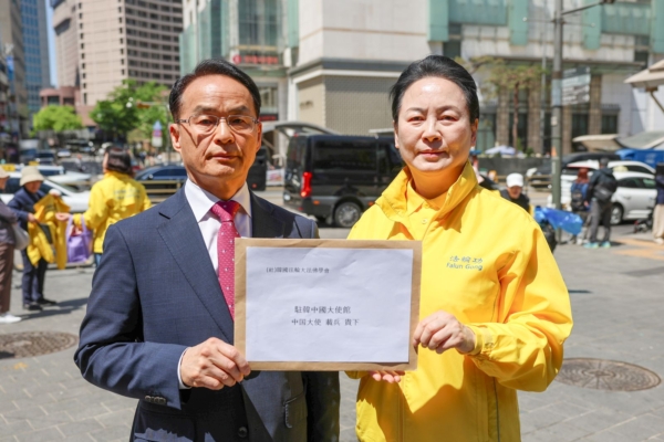 4月24日記者會後,韓國法輪大法佛學會已經將相關聲明書投進中共大使館信箱。