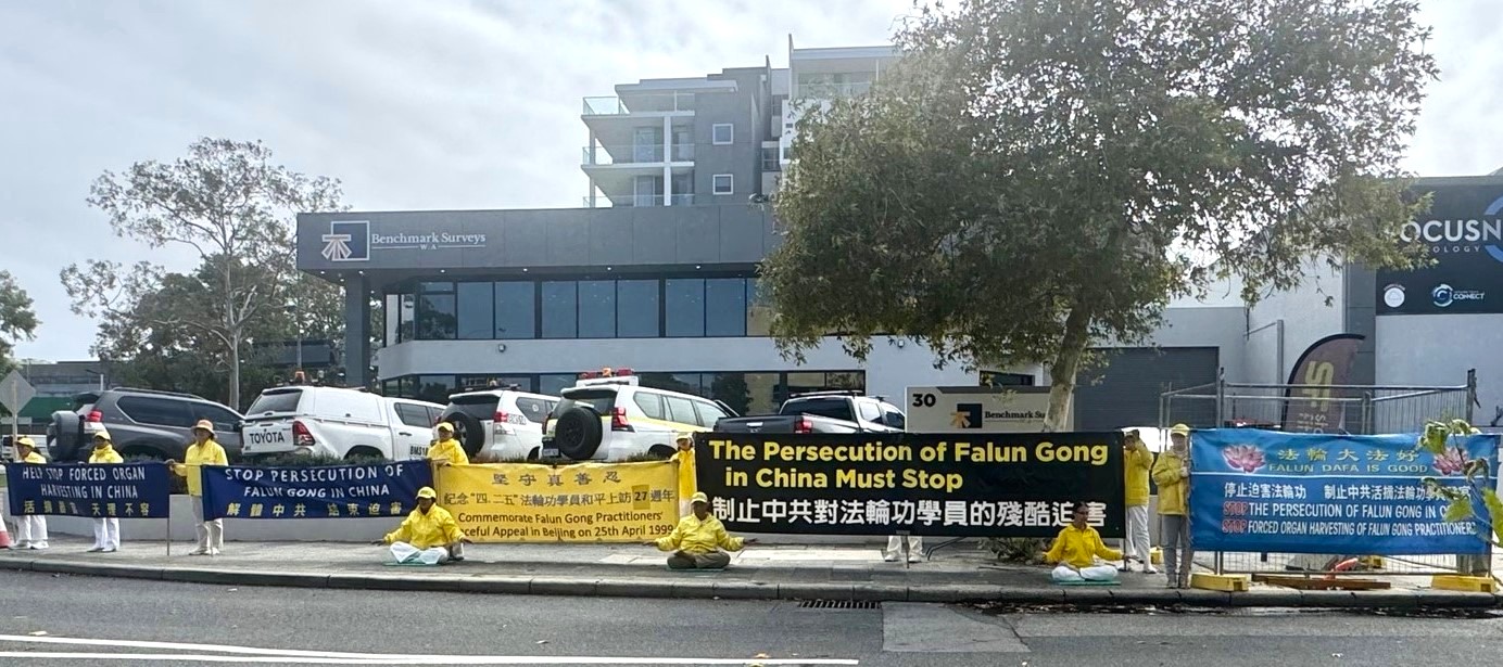 4月23日和25日,西澳法輪功學員分別在中共駐珀斯總領事館對面和弗里門特爾市(City of Fremantle)舉行了紀念4.25萬人和平上訪27周年活動。(明慧網)