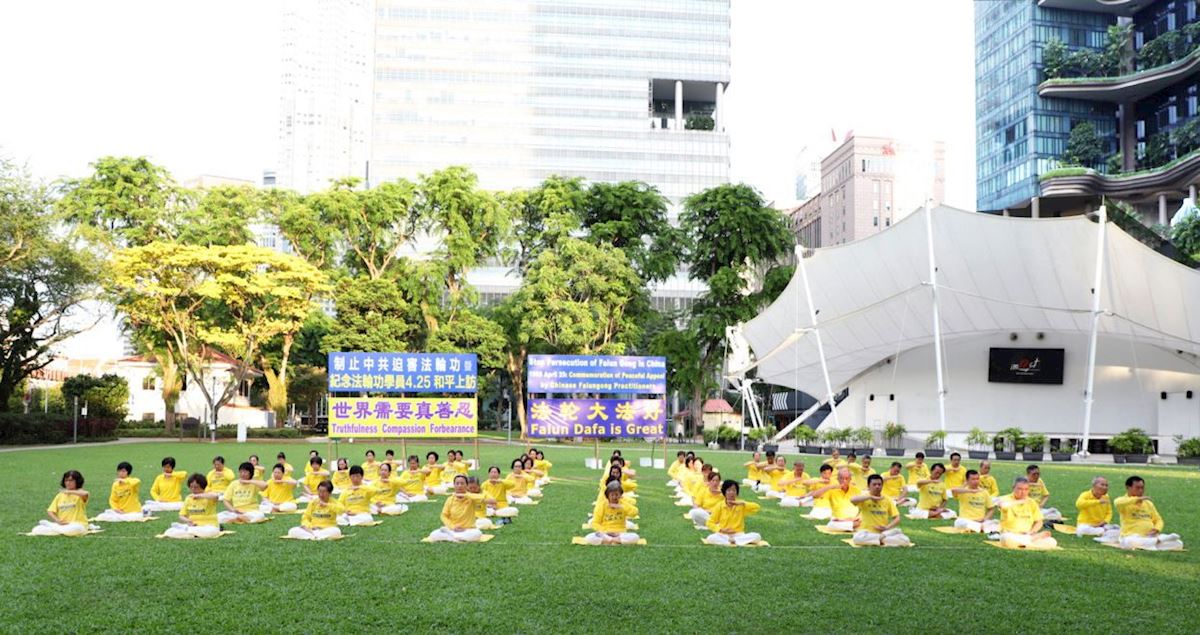 4月16日下午,新加坡部份法輪功學員在芳林公園舉辦紀念活動。(明慧網)