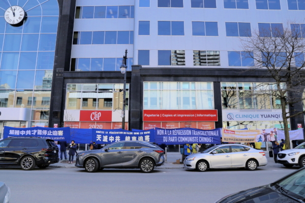 4月21日,4.25和平上訪27周年到來之際,滿地可部份法輪功學員在中領館前舉行反迫害集會,呼籲徹底解體中共,結束迫害。(大紀元)