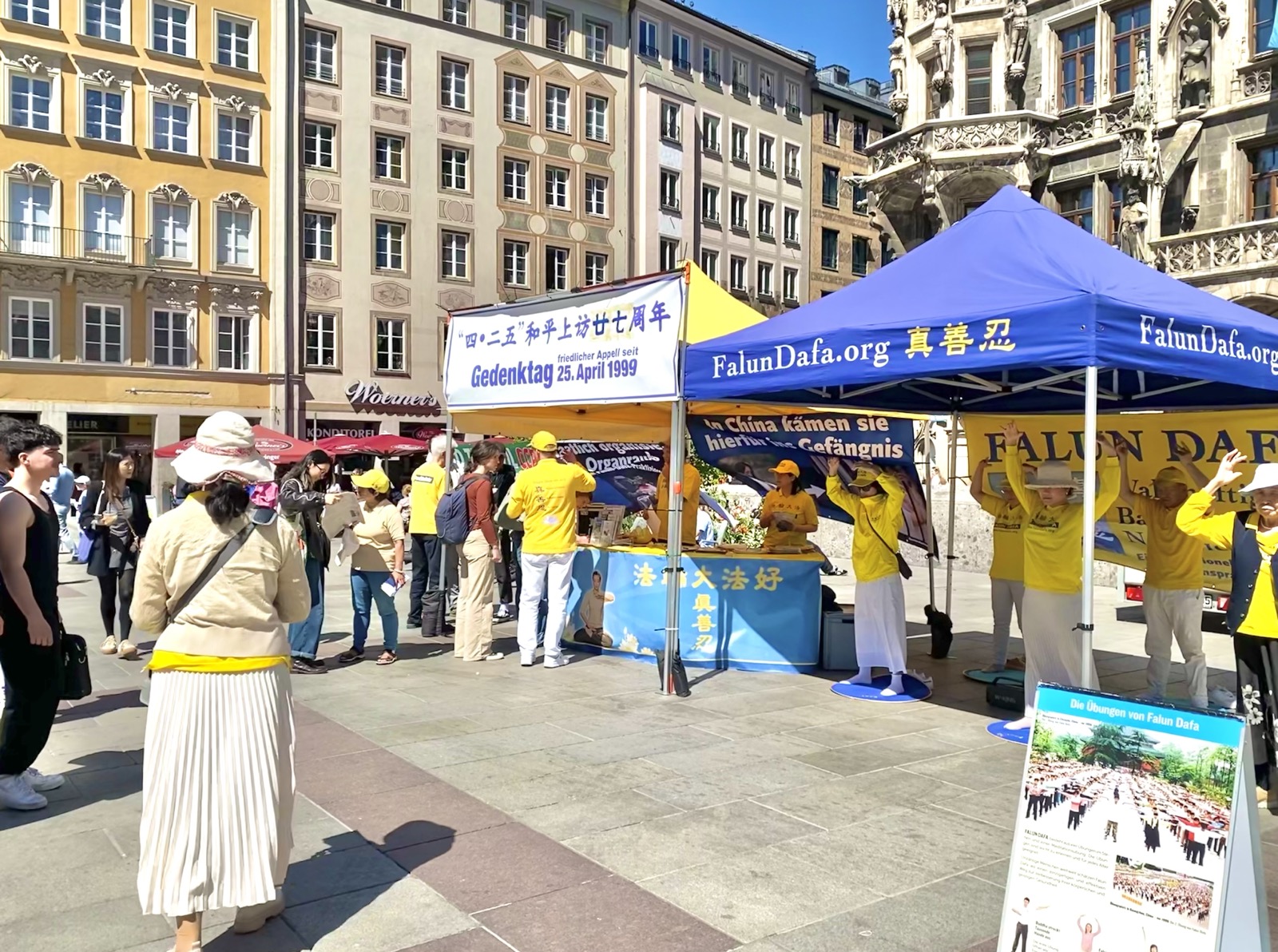 慕尼黑部份法輪功學員在瑪琳廣場集會,紀念4.25和平上訪。(黃芩/大紀元)