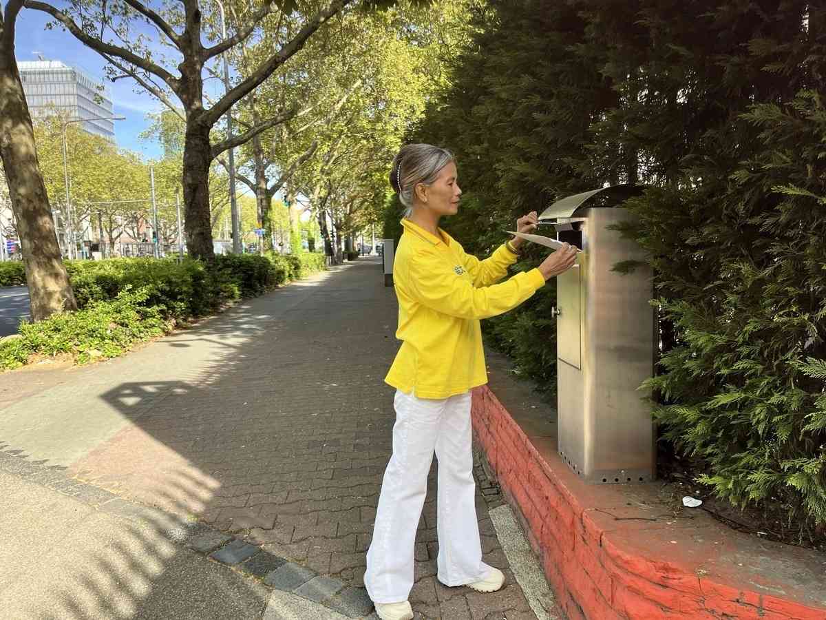投給中共駐法蘭克福中領館法輪功真相信。(大紀元)