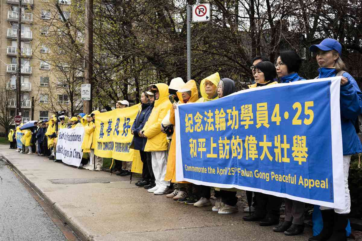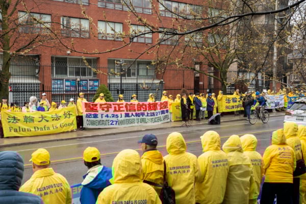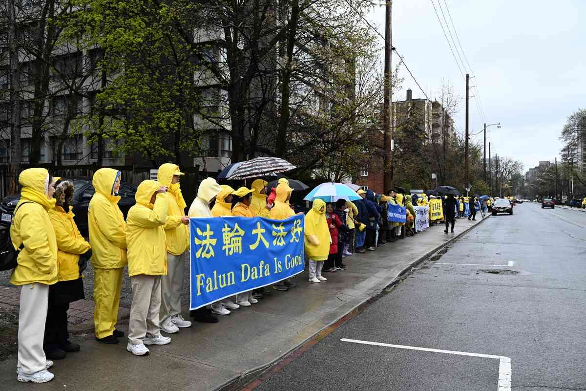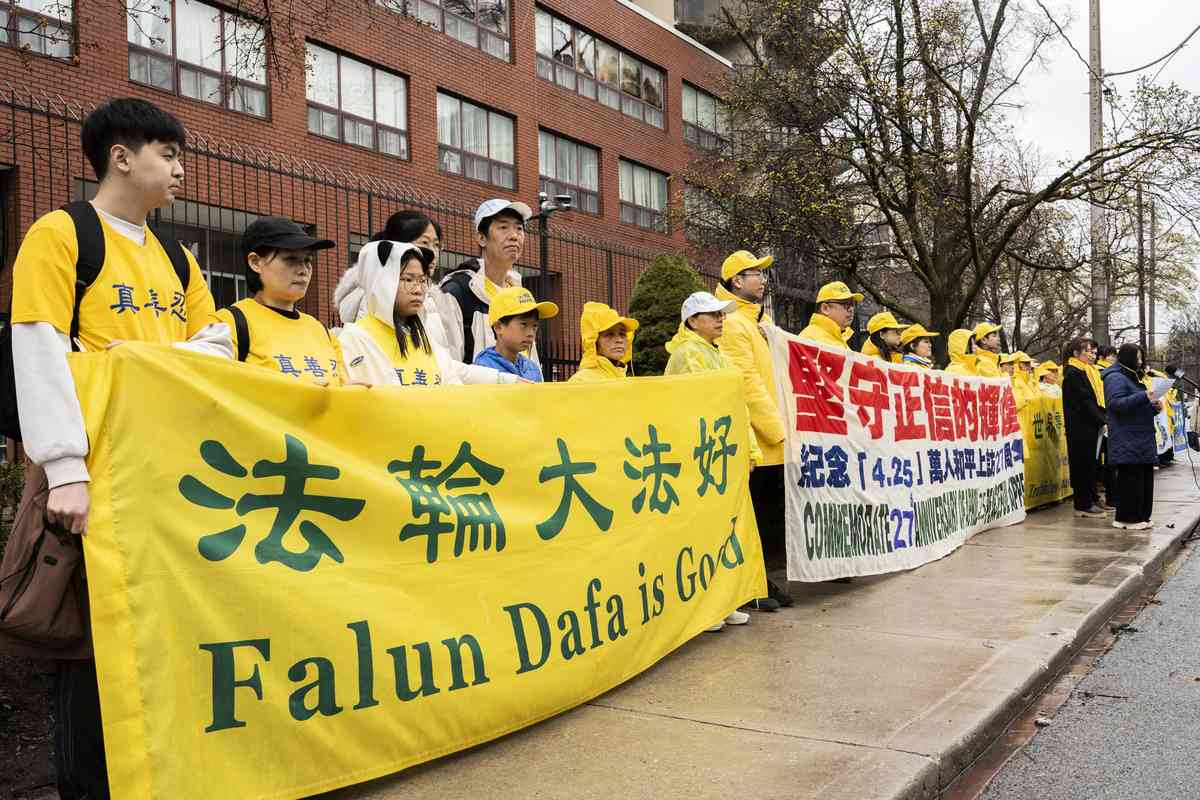 2026年4月25日,多倫多部份法輪功學員在市中心舉行集會、真相長城活動,以紀念4·25和平上訪27周年。